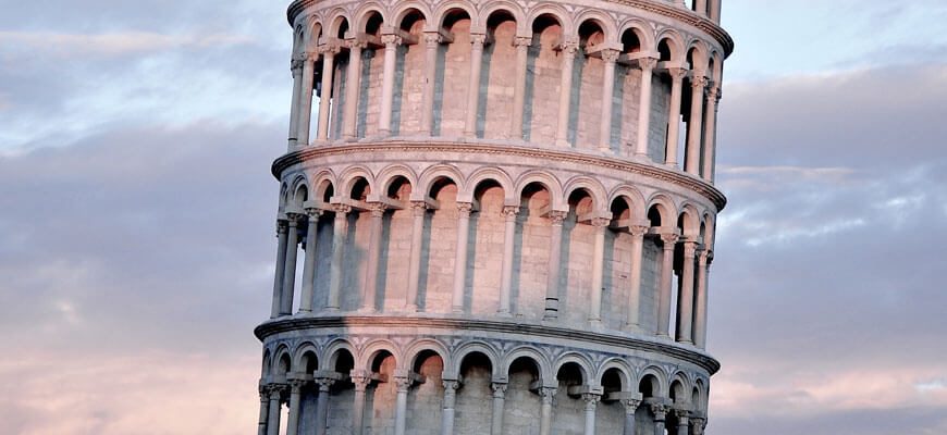 Колокольная башня, часть ансамбля городского собора Санта-Мария-Ассунта (Пизанский собор) в городе Пиза, получившая всемирную известность благодаря непреднамеренному наклону.